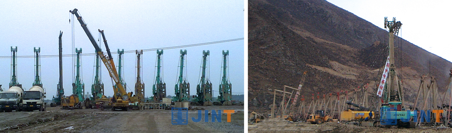 桩工设备中的连续墙抓斗作为水利水电建设中的主要工程机械品种,在防渗漏、固堤坝、保安全方面发挥着巨大作用。由于全国各地地质条件复杂多样,有砂层、卵石、岩石、溶洞等各种地层,所以对连续墙抓斗的技术含量和开挖成槽工艺要求非常严格,但这对于上海金泰工程机械公司的连续墙抓斗,不是困难,都能做出理想的地下成槽工艺。并且,金泰SG系列连续墙抓斗在这一领域独领风骚,创造了行业内一个又一个经典工程,如:南水北调工程、三峡水利工程、安谷水电站项目、拉萨旁多水利枢纽、马鞍山水库工程、引黄灌溉龙湖调蓄工程、兴隆水利施工等,产品在这一领域的平均使用率达到75%以上。目前,金泰公司具有国内最完整系列地下连续墙抓斗,产品型谱为:SG22、SG35、SG46、SG46E、SG50、SG60。这些绿色身影忙碌在一系列水利水电工程上,属于地下连续墙施工领域的绝对主力军,为国家建设、居民安康做出了重要贡献。