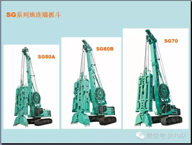 地连墙成槽类装备——上海金泰地连墙成槽类装备主要包括:SG系列地连墙抓斗和SX系列双轮铣槽机。2016年下半年上海金泰先后发布了SG50A/SG60B/SG70三款新型号地连墙液压抓斗,并迅速进入国内轨道交通建设工程,得到了用户高度的评价;