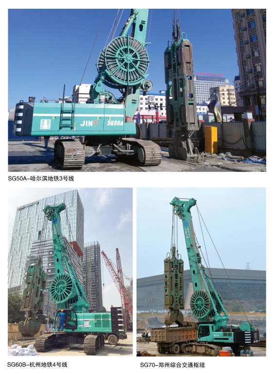 上海金泰SG系列地下连续墙液压抓斗消化吸收了国际前沿技术成果,并根据国内市场地质特点和工程类型,不断地改进与创新,一直保持国内市场的领先地位。2016年,为顺应国家排放新标准,进一步提高功效、降低能耗,工厂对产品进行了全面升级,推出了SG50A、SG60B、SG70三款重点产品,在技术性能、环保排放、设备操控、实时监测、传感装置、保养提醒等各个方面作了改进和提升,增加了复杂地层的挖掘能力,可满足不同规格、不同工况的地下连续墙施工需求。