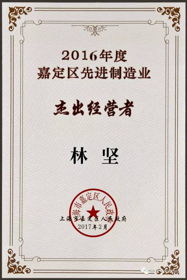 日前,上海市嘉定区召开2016年度区内优秀企业表彰大会,表彰区内一批产业发展先进单位和个人。上海金泰工程机械有限公司荣获“2016年度嘉定区先进制造业综合实力”金奖,总经理林坚荣获“2016年度嘉定区先进制造业杰出经营者”称号,这是自2010年以来上海金泰第六年获得该项荣誉。