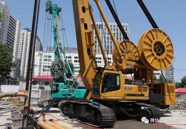 2014年9月——南昌地铁2号线过江隧道中间风井地连墙工程。槽宽 800mm、槽深35.5m,有近20米厚的中风化粉质泥岩,抗压强度在30MPa左右。金泰三大主流系列产品组合上阵、无缝接力——SH30H旋挖钻机引孔、SG60液压抓斗抓槽至15米深,由SX40铣削到底。SX40在历史名城南昌再次创造了经典案例。