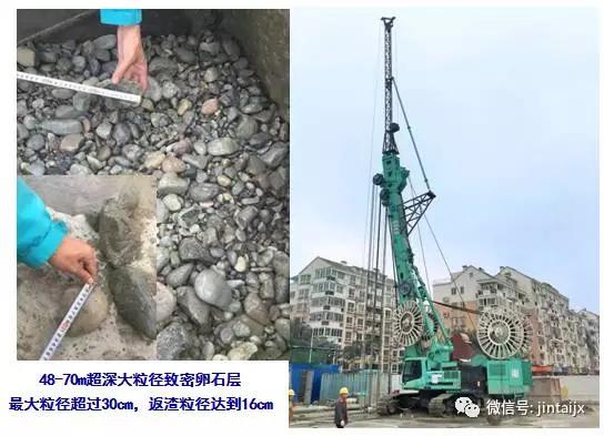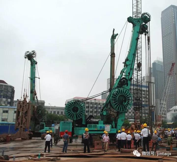 2016年12月——武汉轨道交通七号线八标段武昌工作井专项地连墙工程。上海金泰与隧道股份“强强联手”,SX40与SG60A“双机合璧”,入岩深度10米以上,并成功穿透46MPa中风化胶结砾岩。