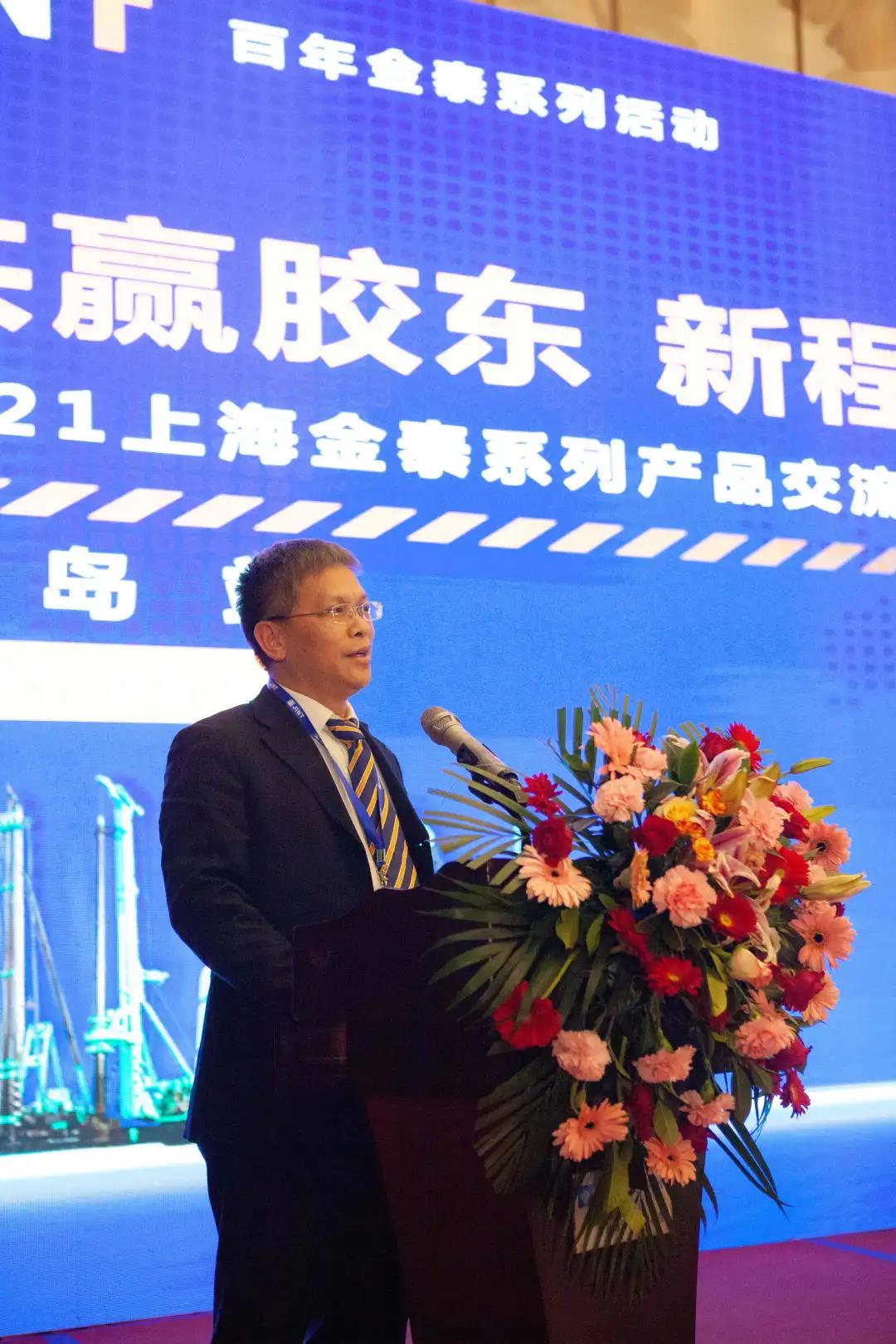金泰公司董事、副总经理徐峰:“今天我们与济南柳工永安机械设备有限公司共同举办这场活动,目的是将金泰多年以来在基础施工装备技术的研发和创新成果与山东省基础施工行业同仁分享,同时希望通过交流与探讨,使金泰的产品能与山东的工程地质和工法特点更加契合匹配,为山东桩基础施工领域的新老朋友提供更加高效和经济的卓越产品。”