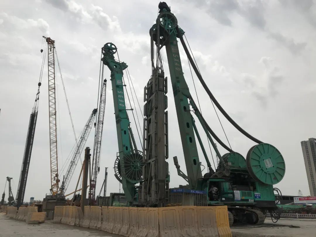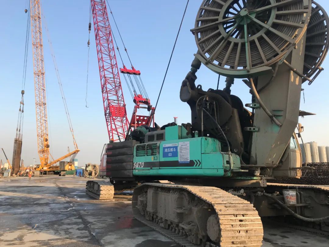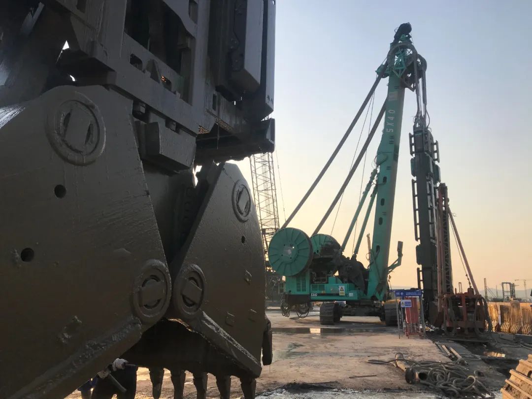 终于完成了。耗时3年半,金泰4台双轮铣和20台地连墙液压抓斗先后在南京江北新区地下空间工程中分别参与8个地质最为复杂的区工段,承担主要施工任务。在高峰期间金泰三大主力产品旋挖、抓斗、双轮铣共有20多台金泰设备同时进行施工,是项目的“绝对主力军设备”。