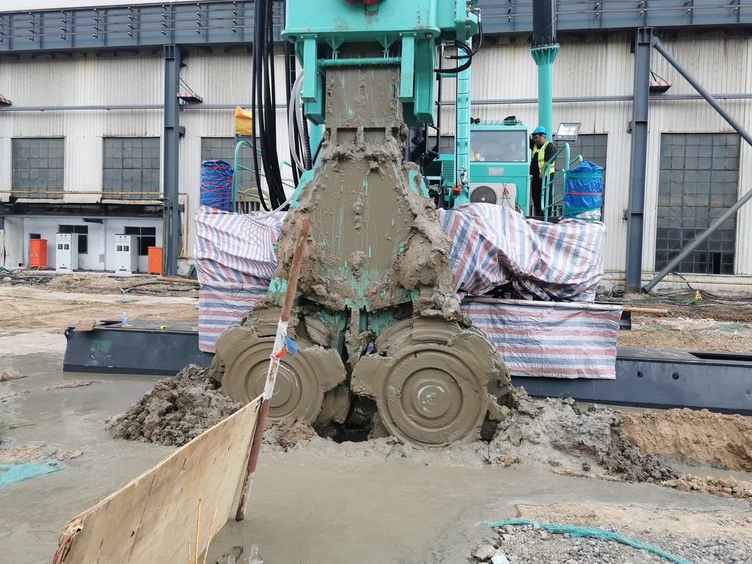 日前 ,被誉为“华北第一坑”的通裕重工股份有限公司锻模车间基坑支护及地下水控制项目已进入施工尾声,该工程已在国庆假期间完成所有等厚水泥土搅拌墙施工,所用设备为金泰结合了液压铣槽机设备技术和深层搅拌技术的SC55双轮搅拌钻机。