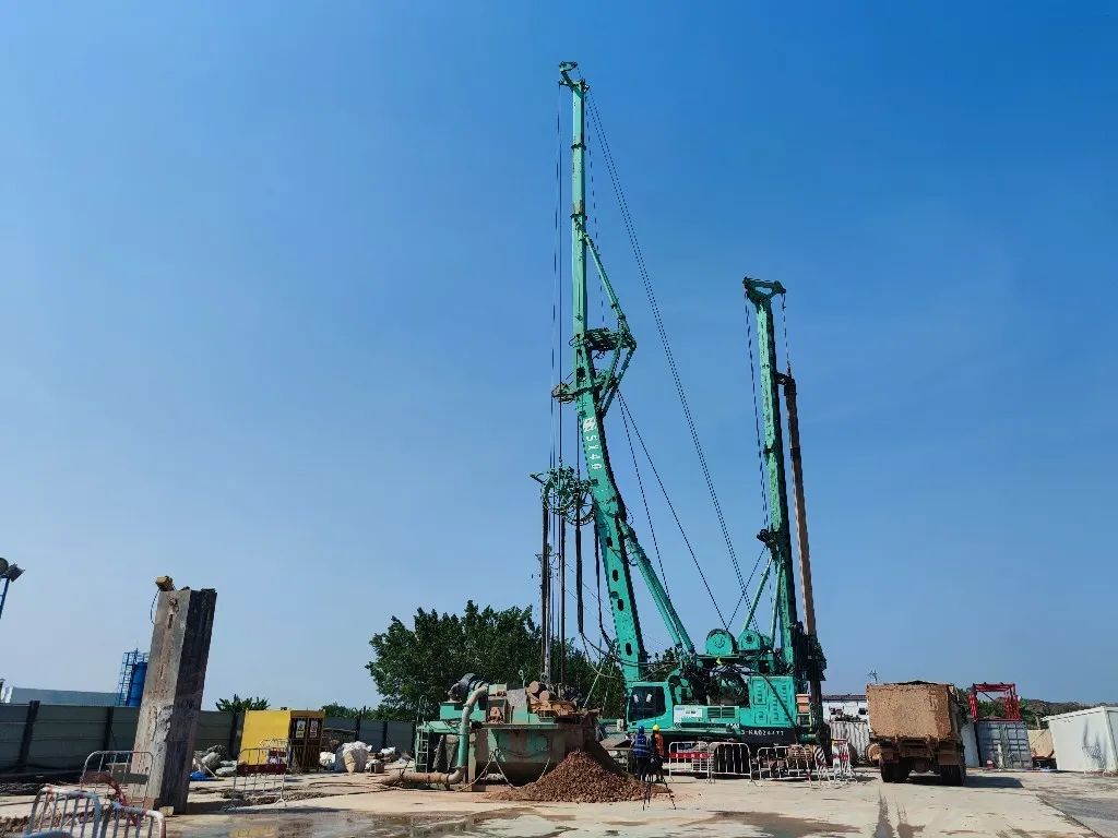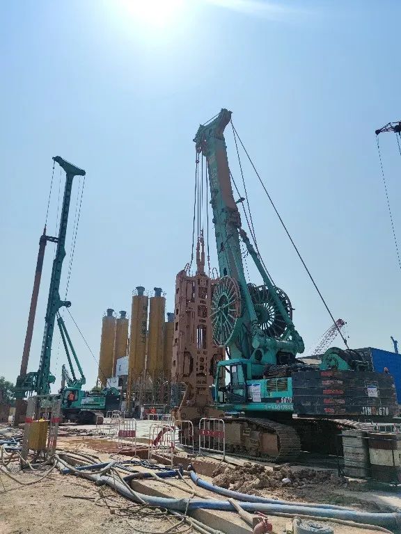 为了提高T3航站楼扩建项目地连墙施工的进度与精度,现场均采用“抓钻铣”组合工艺进行施工。该施工工艺久经市场考验,成墙效率可提升40%以上。另外,“成墙快不快的关键,还得看旋挖引的直不直”。白云机场T3航站楼扩建项目对于垂直精度有着严苛的验收标准,现有多台旋挖设备引孔未能符合要求,金泰SH38旋挖钻机凭借自身深厚的技术底蕴,无论在硬地层和超深引孔均无一偏孔,施工顺畅,得到了现场项目部的一致认可。